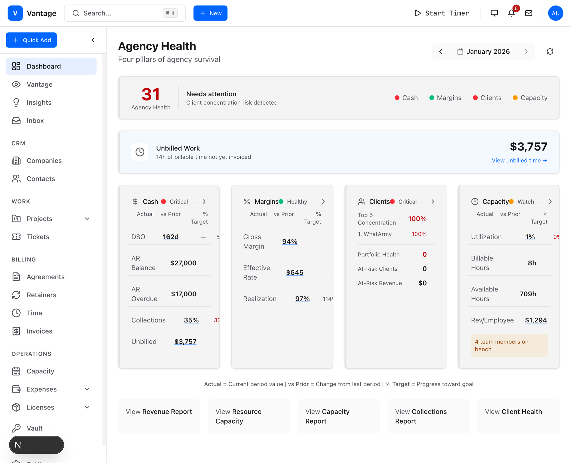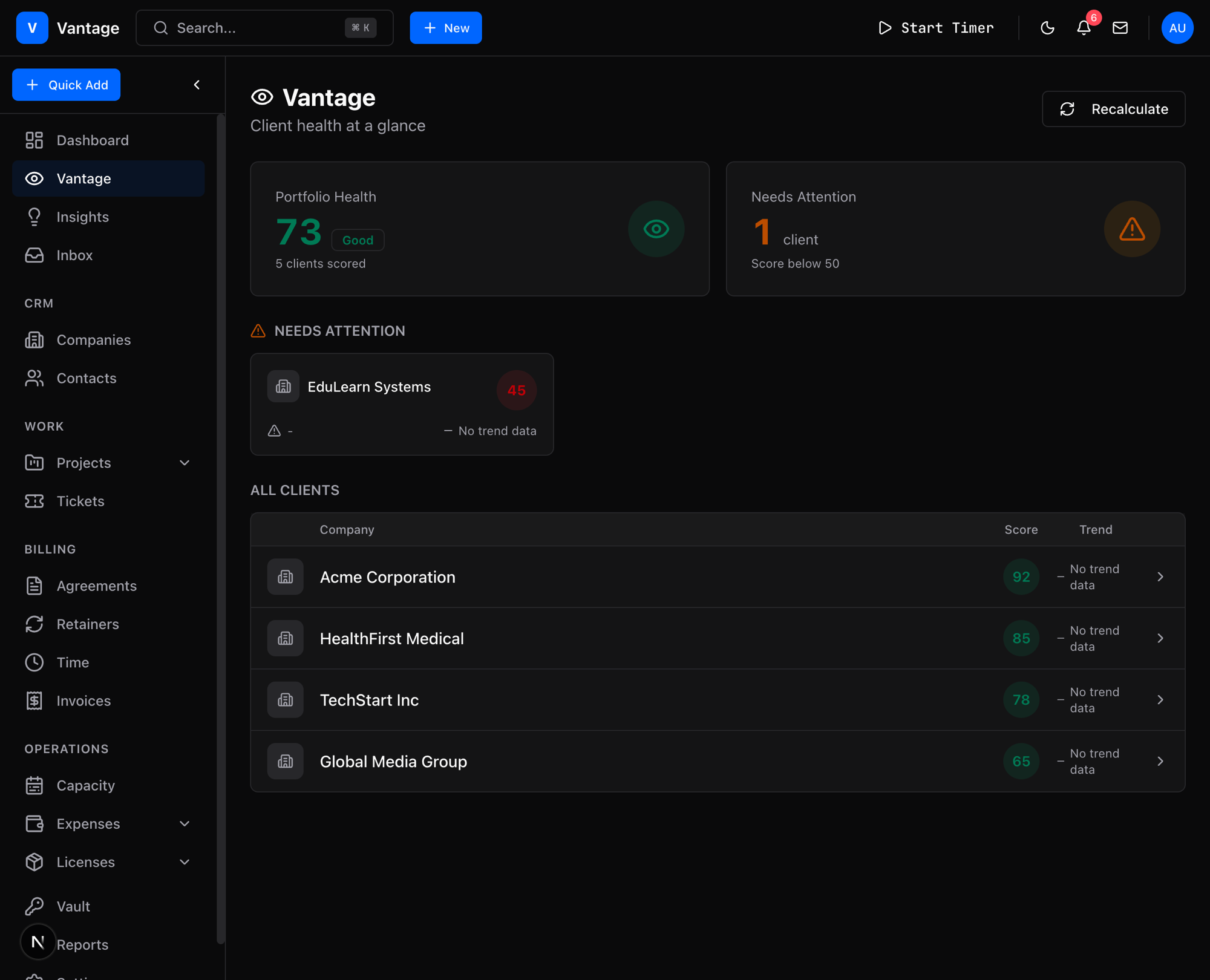 Client churn happens silently. Vantage catches it early.